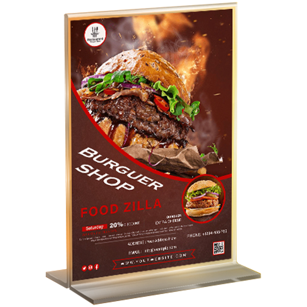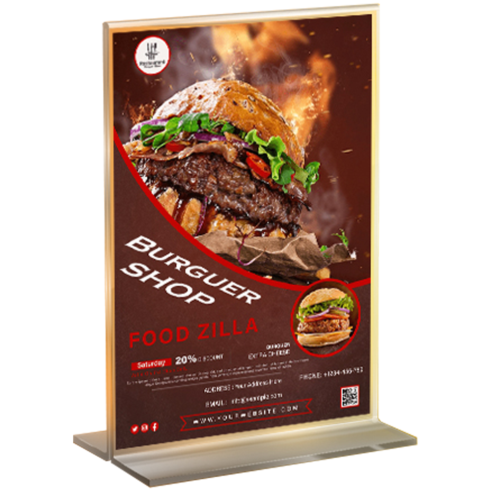Bubistudios A7 T Tipi Dikey Masa Üstü Şeffaf Pleksi Föylük / Broşürlük